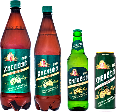 Пиво светлое «Хмелёфф классическое» варится в строгом соответствии с «немецким законом о чистоте пивоварения от 1516 года», в котором говорится, что для производства пива должны использоваться только солод, вода и хмель. В рецептуре используется высококлассный сорт пивоваренного ячменя, специально выращиваемый для производства данного сорта пива. Только тщательно отобранный калиброванный солод и чистейшая артезианская вода могут стать исходными ингредиентами пива «Хмелёфф классическое».